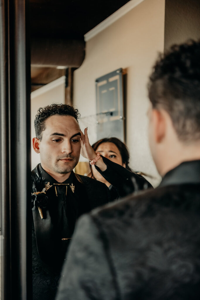 Perched atop Thornton’s skyline, Brittany Hill is basically Denver’s castle in the clouds. With panoramic views of the city and the Rockies, it’s the kind of place where you can say “I do” while the sun sets behind snow-capped peaks. The venue’s rustic elegance—think double-sided fireplaces, vaulted ceilings, and a built-in wood bar—was the perfect backdrop for Katrina and Angel’s ethereal aesthetic