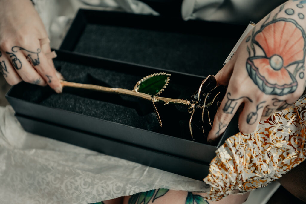 This wasn’t your typical pastel-and-peonies wedding. Katrina and Angel leaned into rich jewel tones, velvet textures, and celestial motifs. Tarot cards adorned the tables, and the couple’s “Til Death” theme added a gothic twist that was both romantic and rebellious. It was a celebration that felt like a love spell come to life.